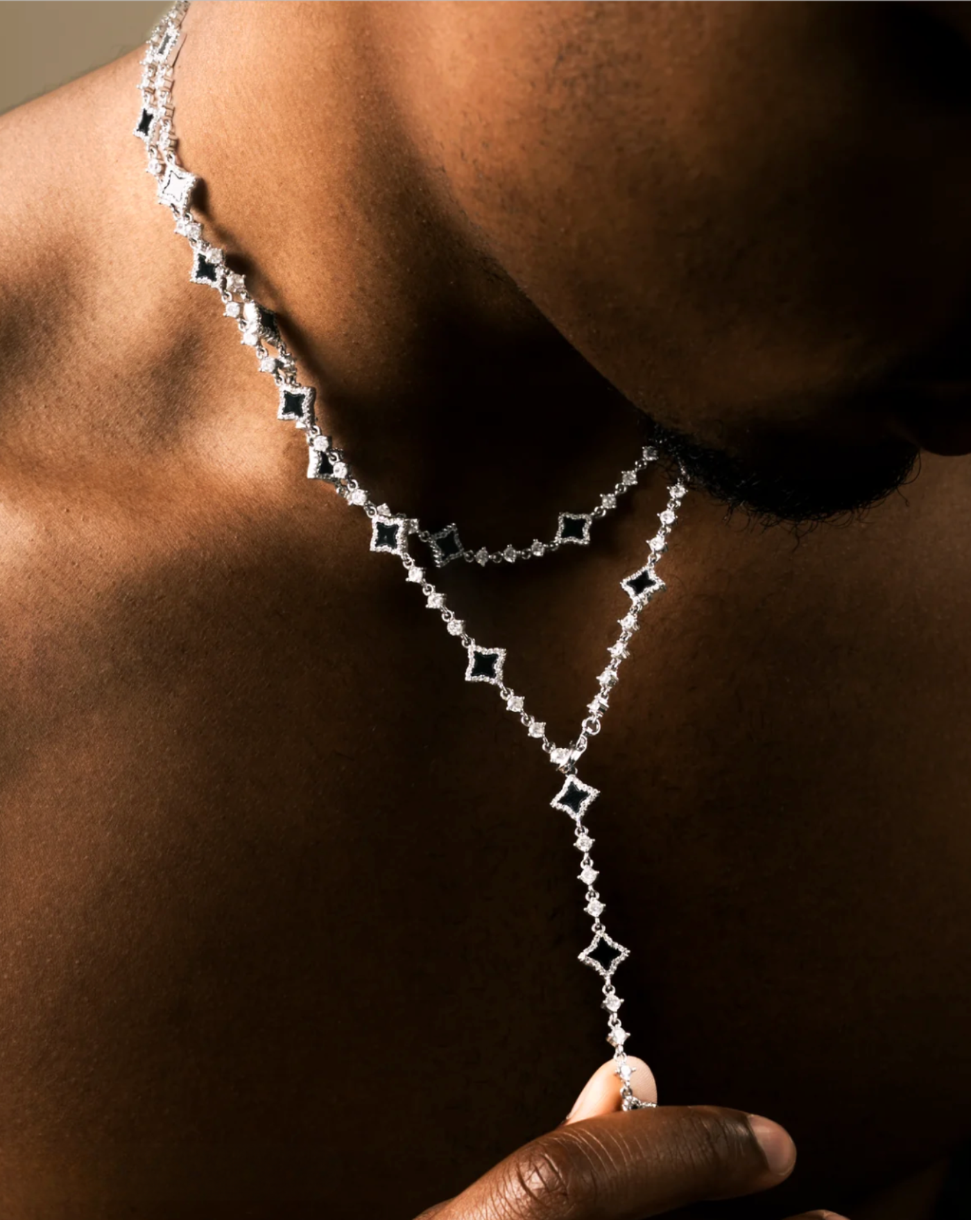 Chaîne Flower Pearl Argentée - Pierres Noires