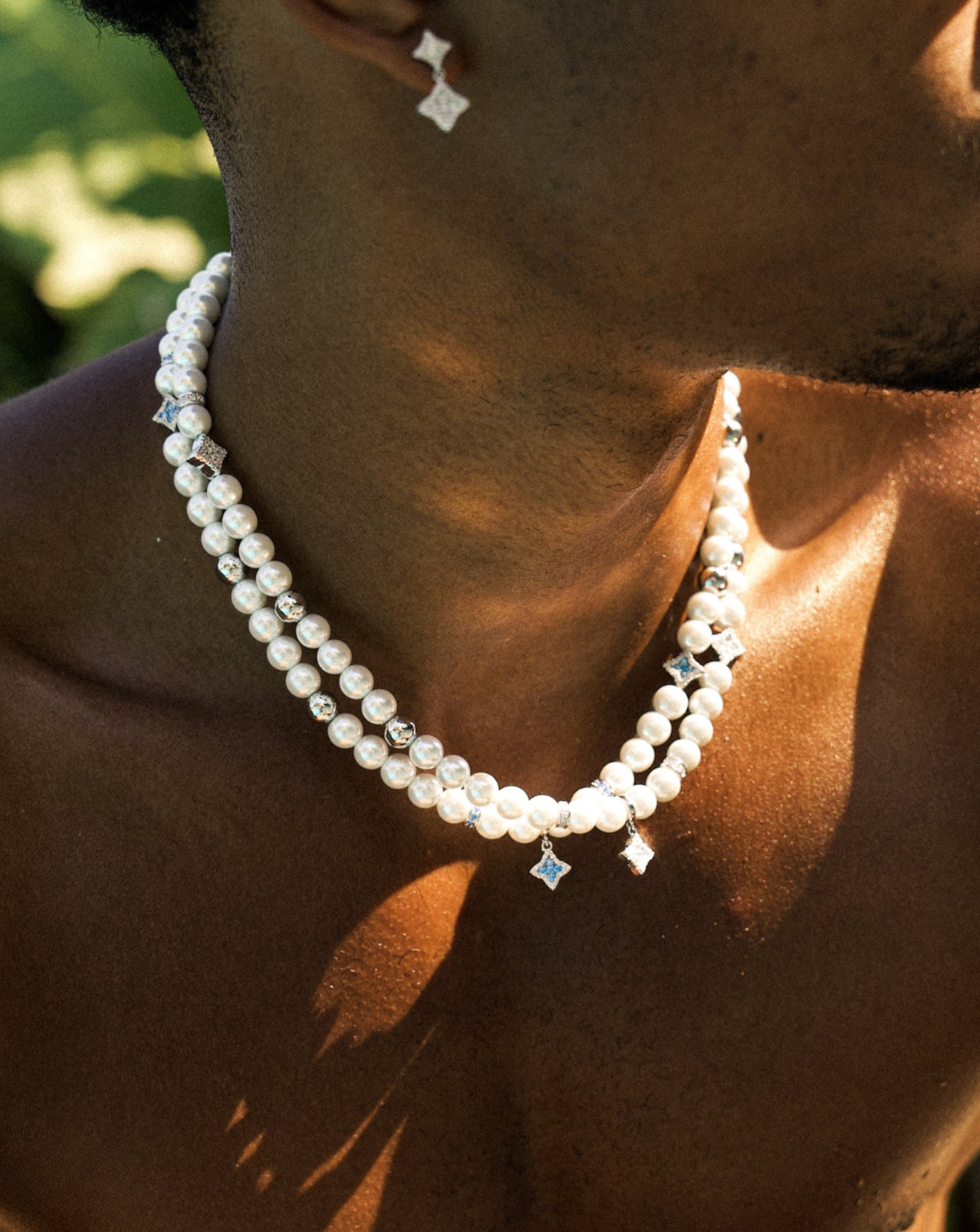 Chaîne Flower Pearl Argentée - Pierres Blanches