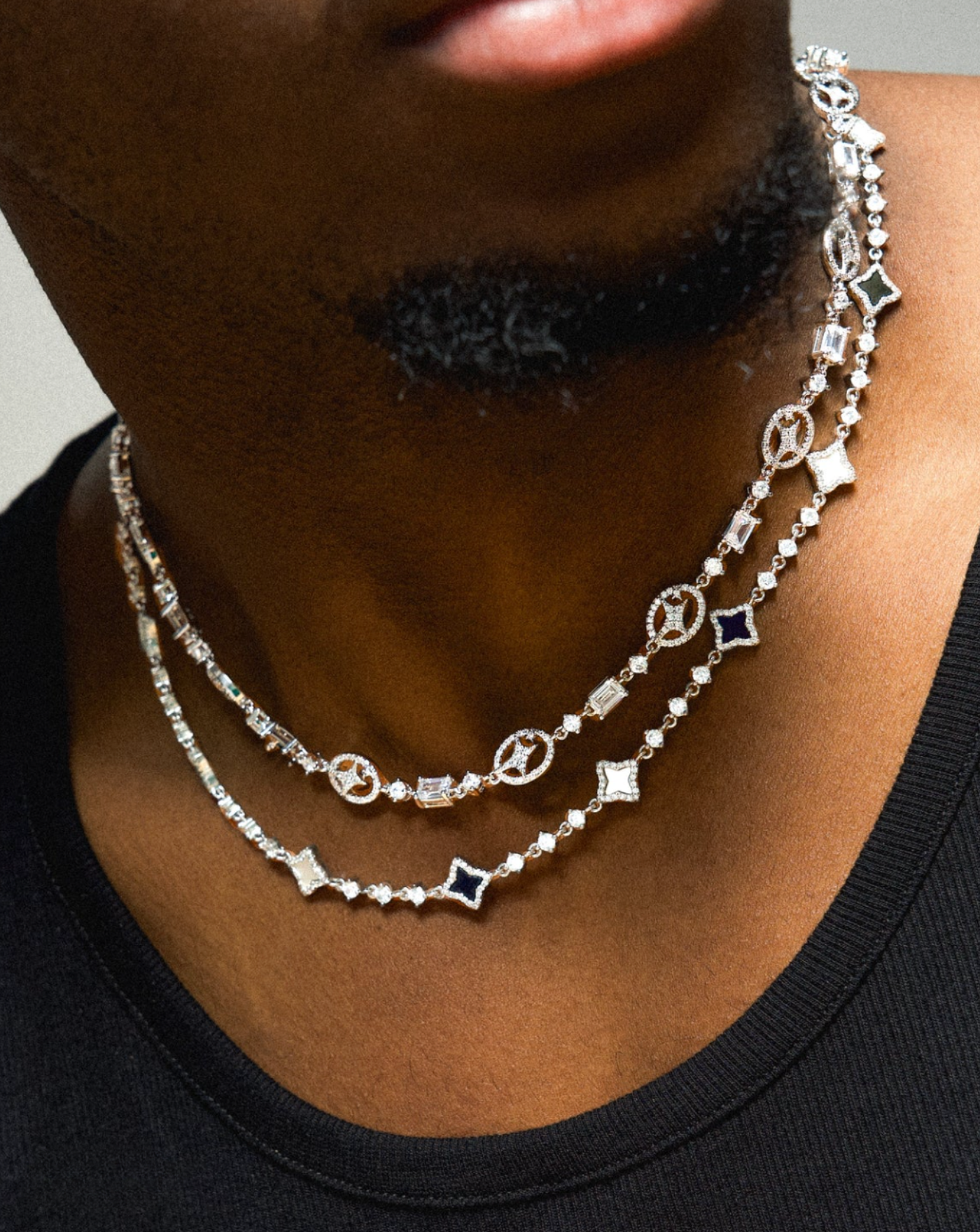 Chaîne Flower Tennis Argentée - Motif Blanc
