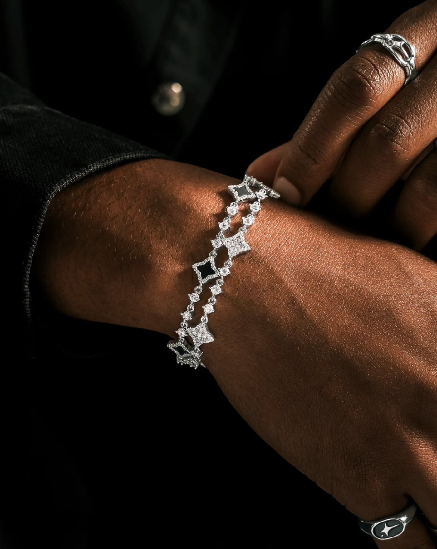 Bracelet Flower Tennis Argenté - Motif Blanc