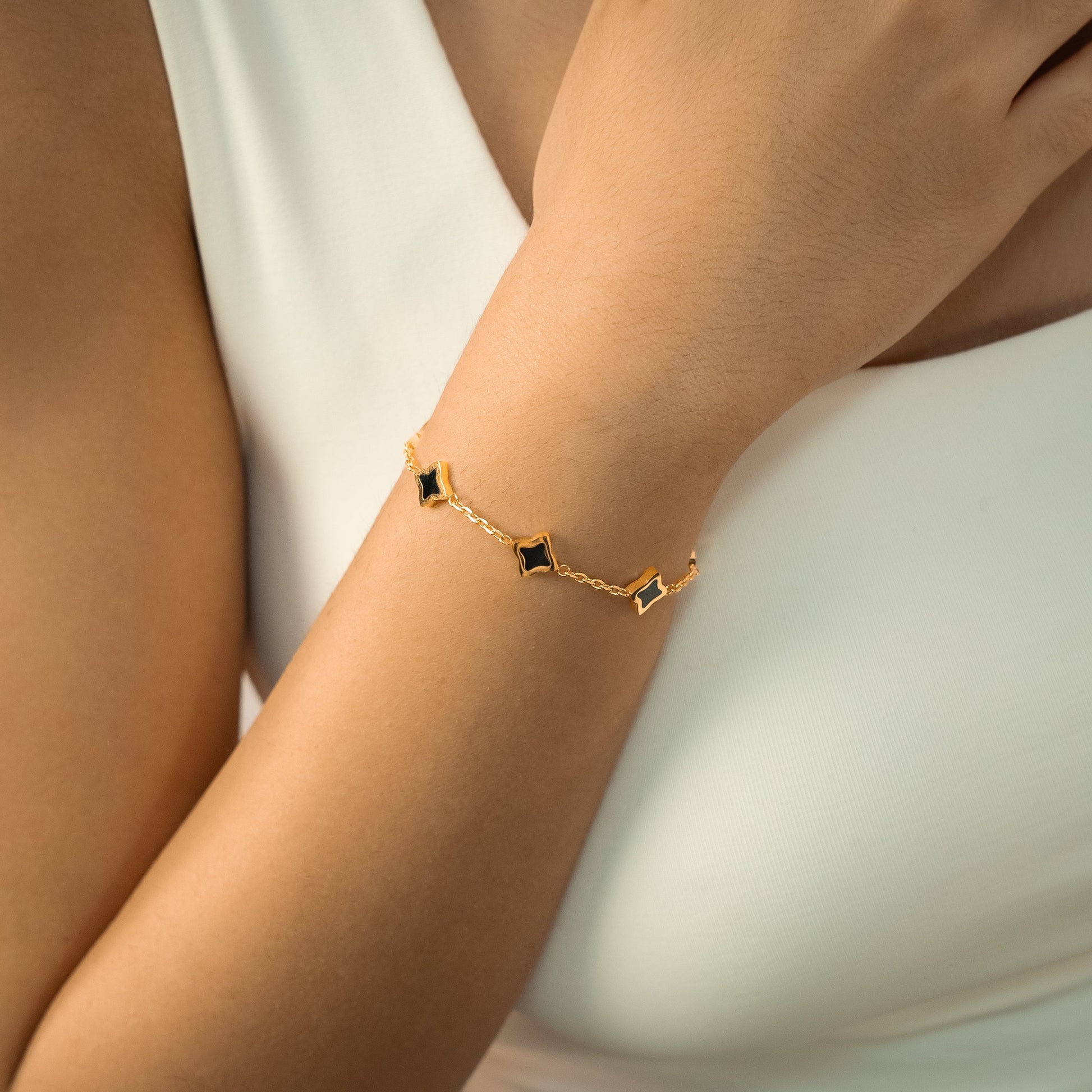 Discover our Flower Bracelet, an exquisite piece that combines the timeless elegance of a cable chain with the delicate beauty of flowers. Each flower, adorned with an imitation onyx stone and 8 mm thick, adds a touch of charm and sophistication to this 2 mm bracelet.