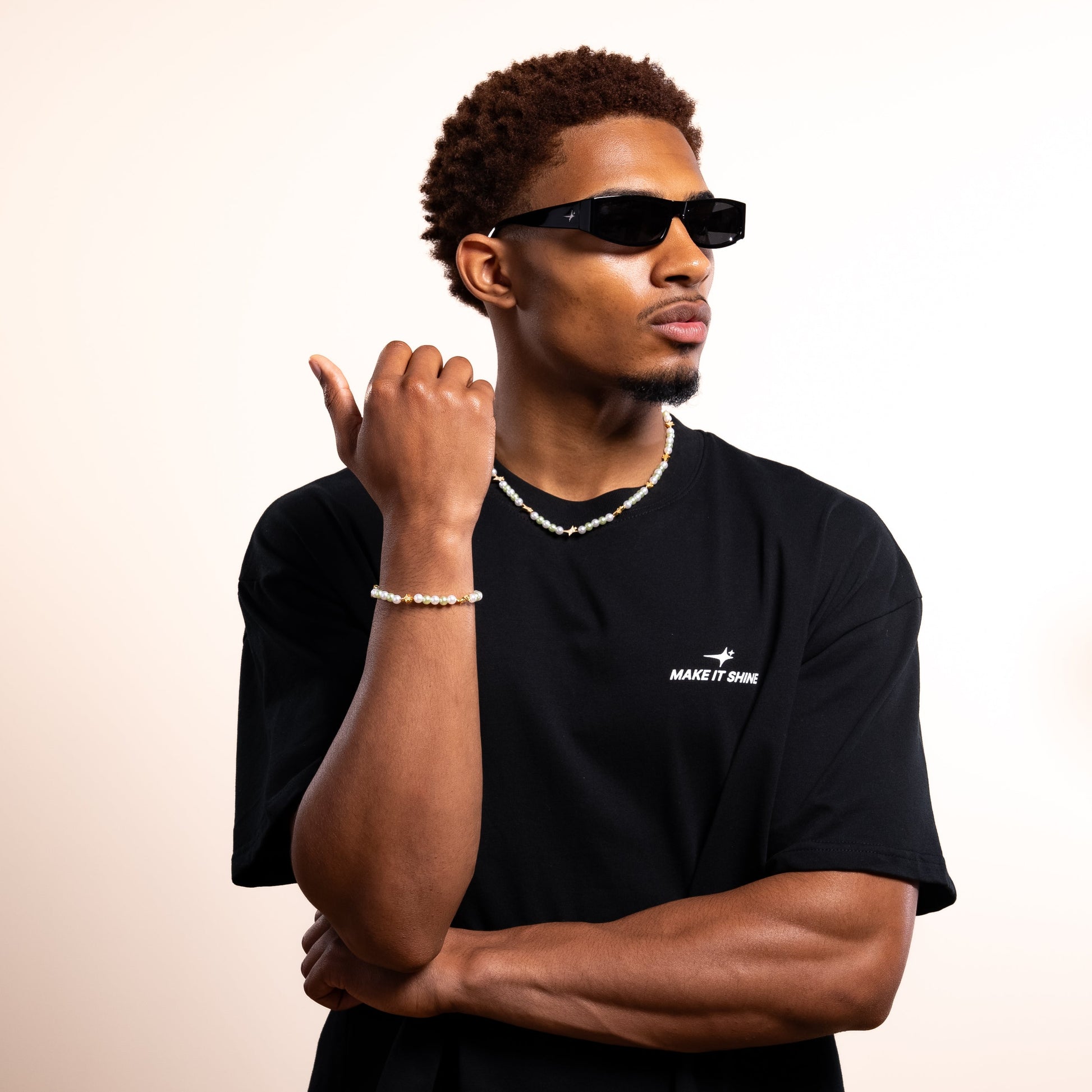 Discover our Signature Beaded Chain, an elegant piece that combines the purity of 6mm pearls with the brilliance of our iconic gold logo. Adorned with cubic zirconia and 8mm thick, these logos add a touch of sparkle and sophistication to this unique piece.