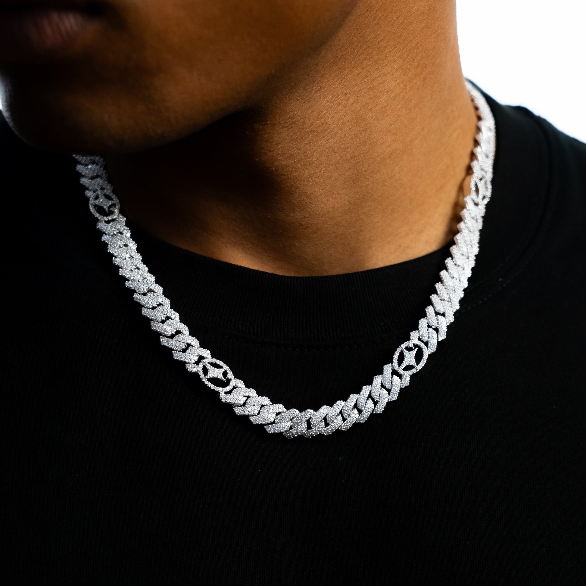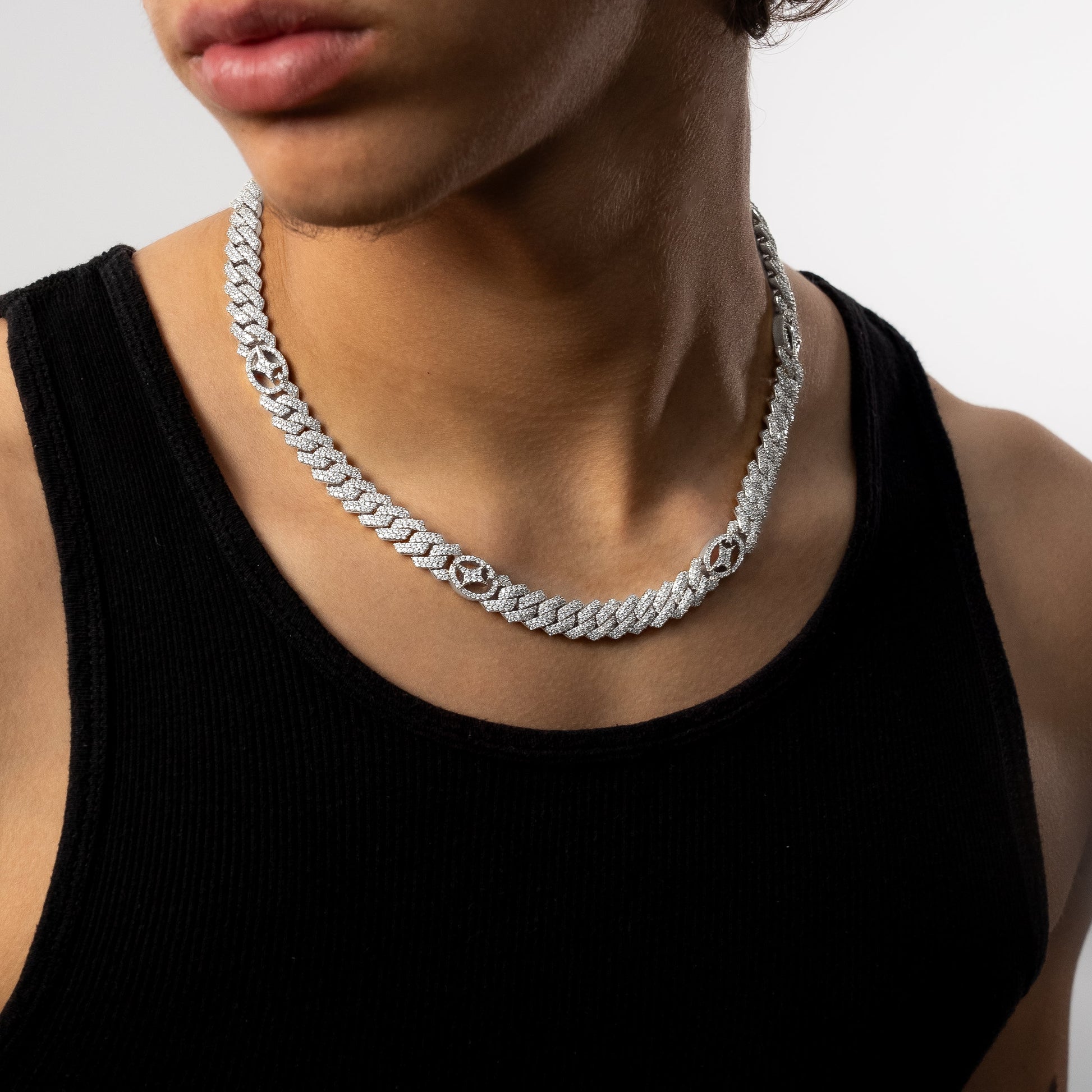 Discover our 10mm Prong Link chain, a striking and sophisticated piece that perfectly embodies the Make it Shine DNA. Its unique design combines prong link links fully set with sparkling cubic zirconia stones with subtly integrated Make it Shine logos. Unparalleled brilliance and a strong signature for a piece of jewelry that won't go unnoticed.