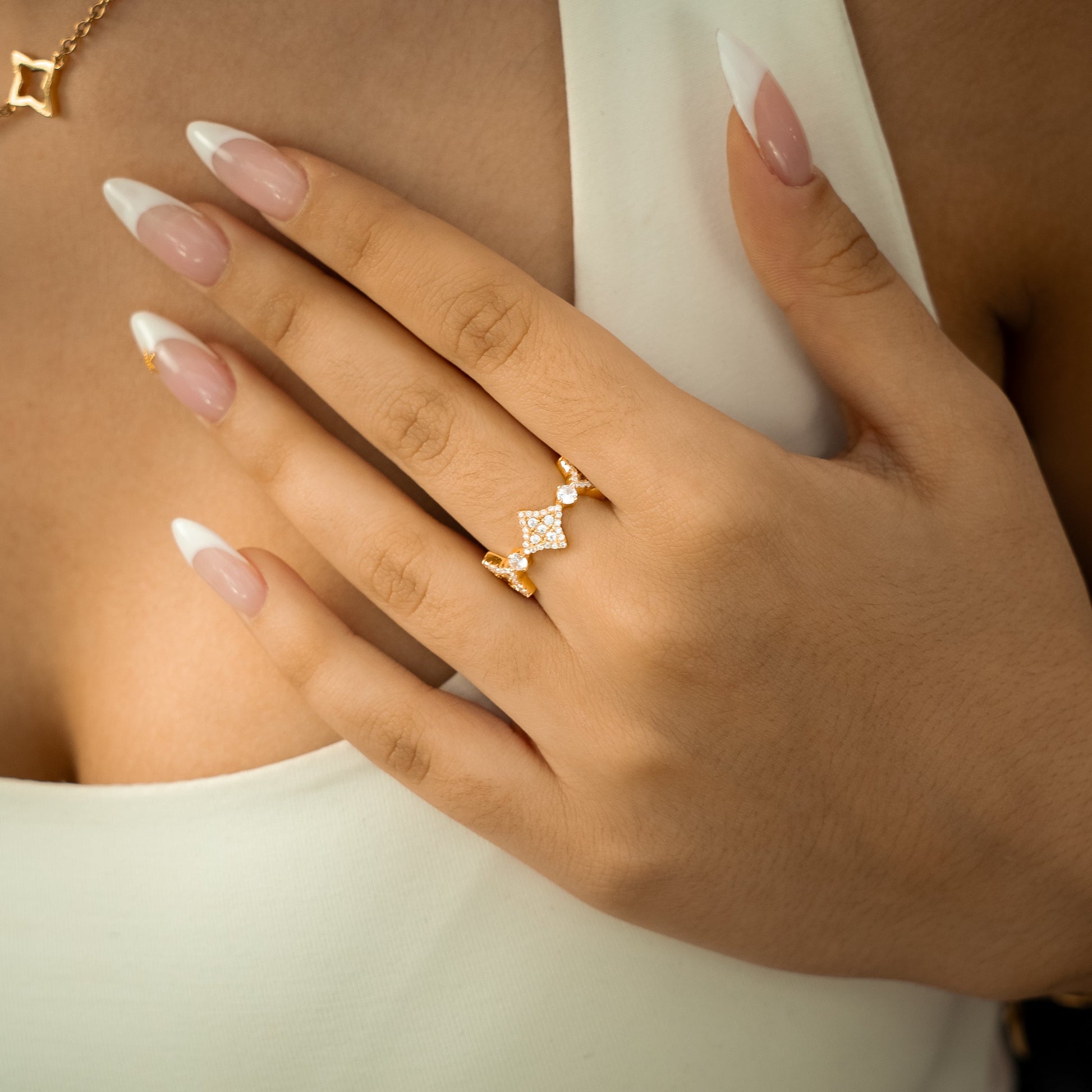 Discover our Flower Tennis ring, a stunning piece from our Stars & Flowers collection. It features 10mm flowers, each delicately set with cubic zirconia to capture their brilliance. These flowers are separated by smaller 3mm cubic zirconia stones, adding a touch of sparkle and sophistication to this elegant ring.