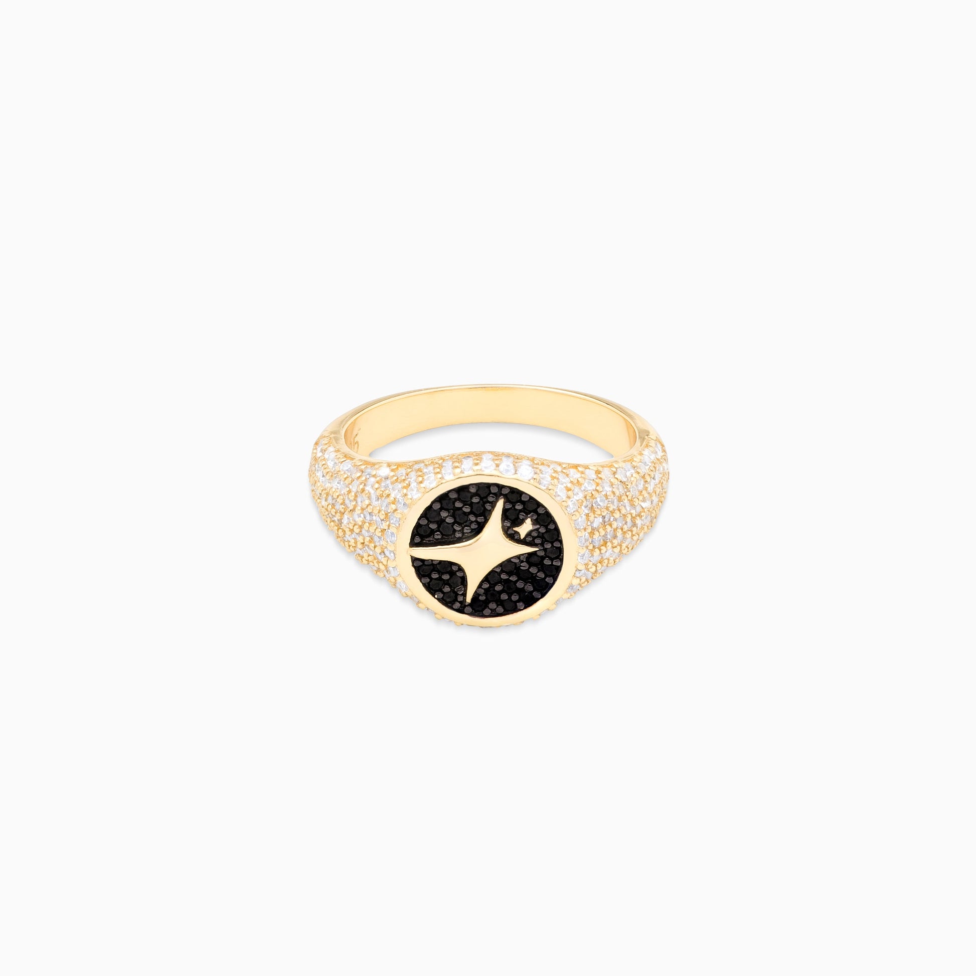 Iced Round Gold Signet Ring
