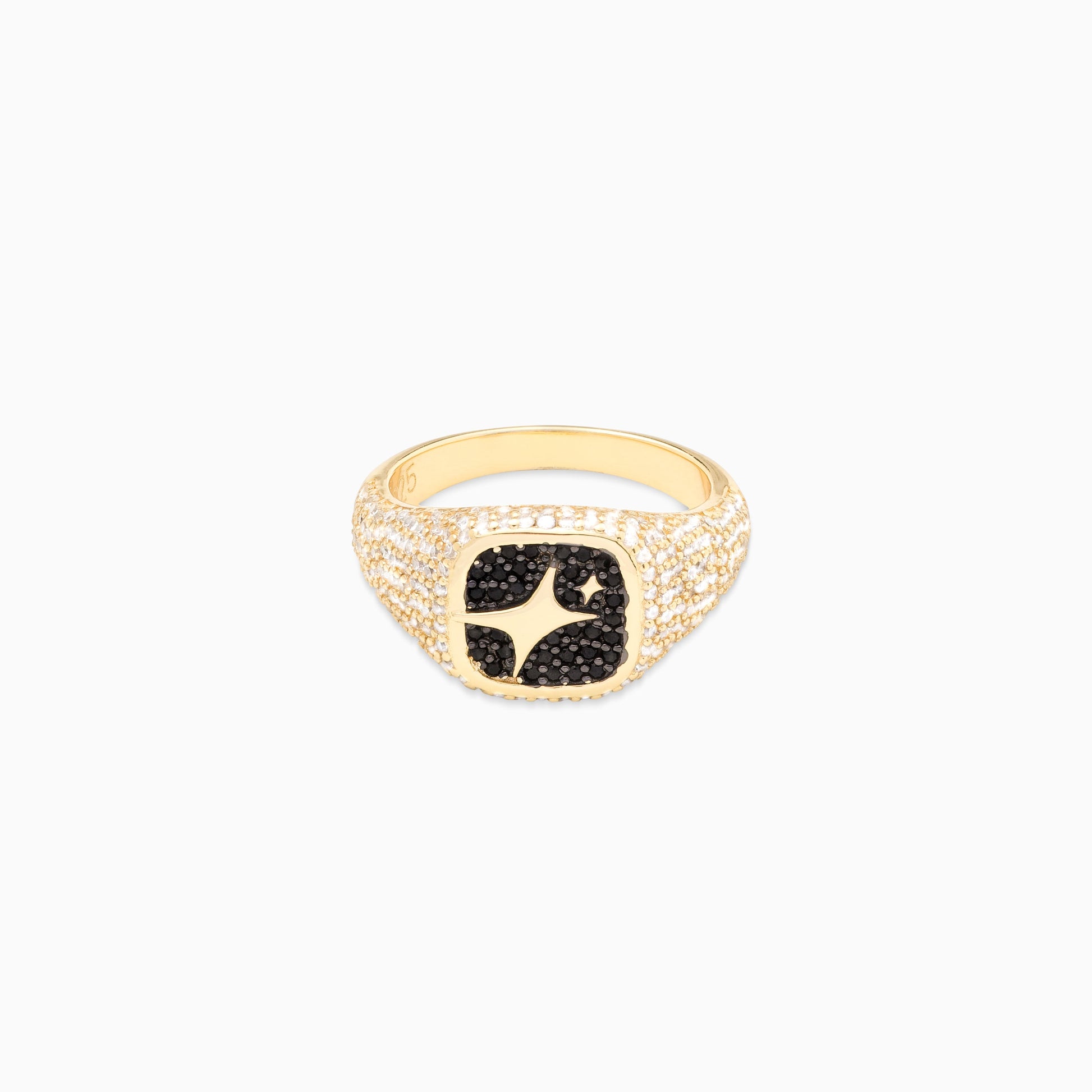 Discover our Iced Square signet ring with its 10mm thick square face. Featuring our iconic logo, along with black and white cubic zirconia, this ring is a must-have.