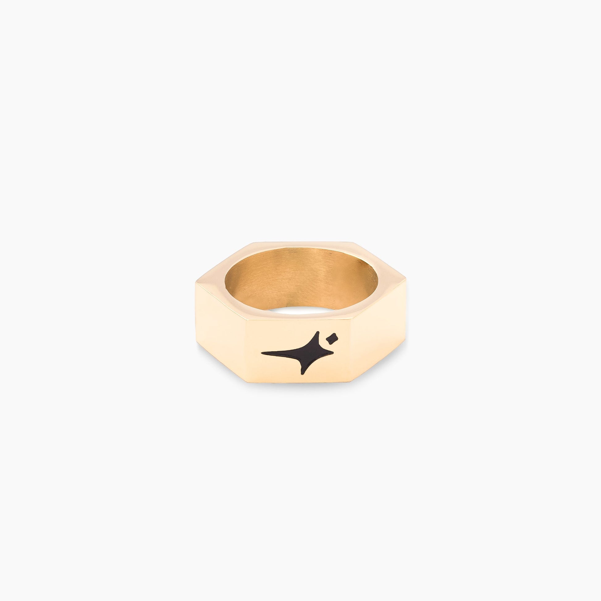 Introducing our Nut ring, a bold piece in the shape of an 8mm nut, meticulously detailed with our iconic logo.
