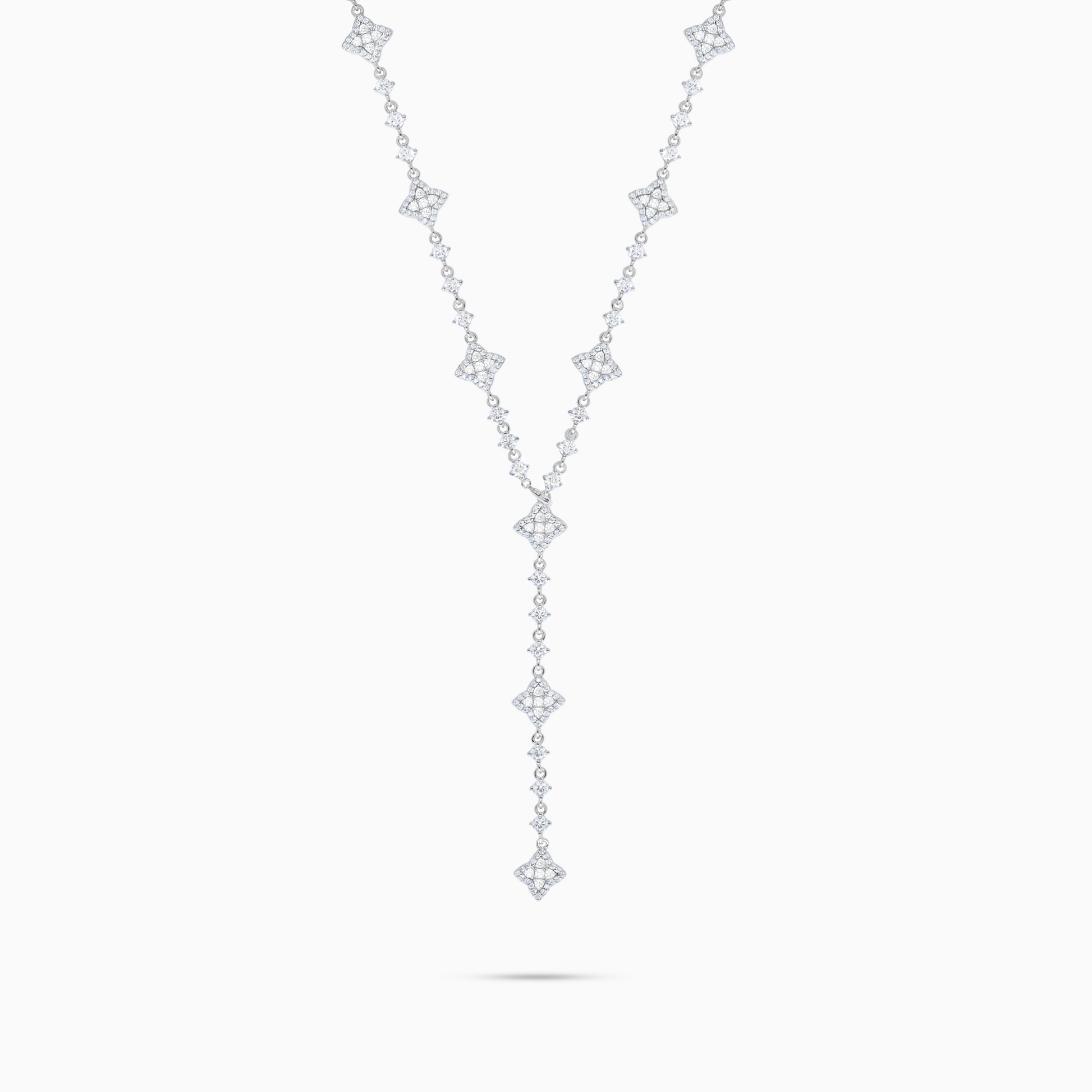 Silver Tennis Flower Lariat - White Stones