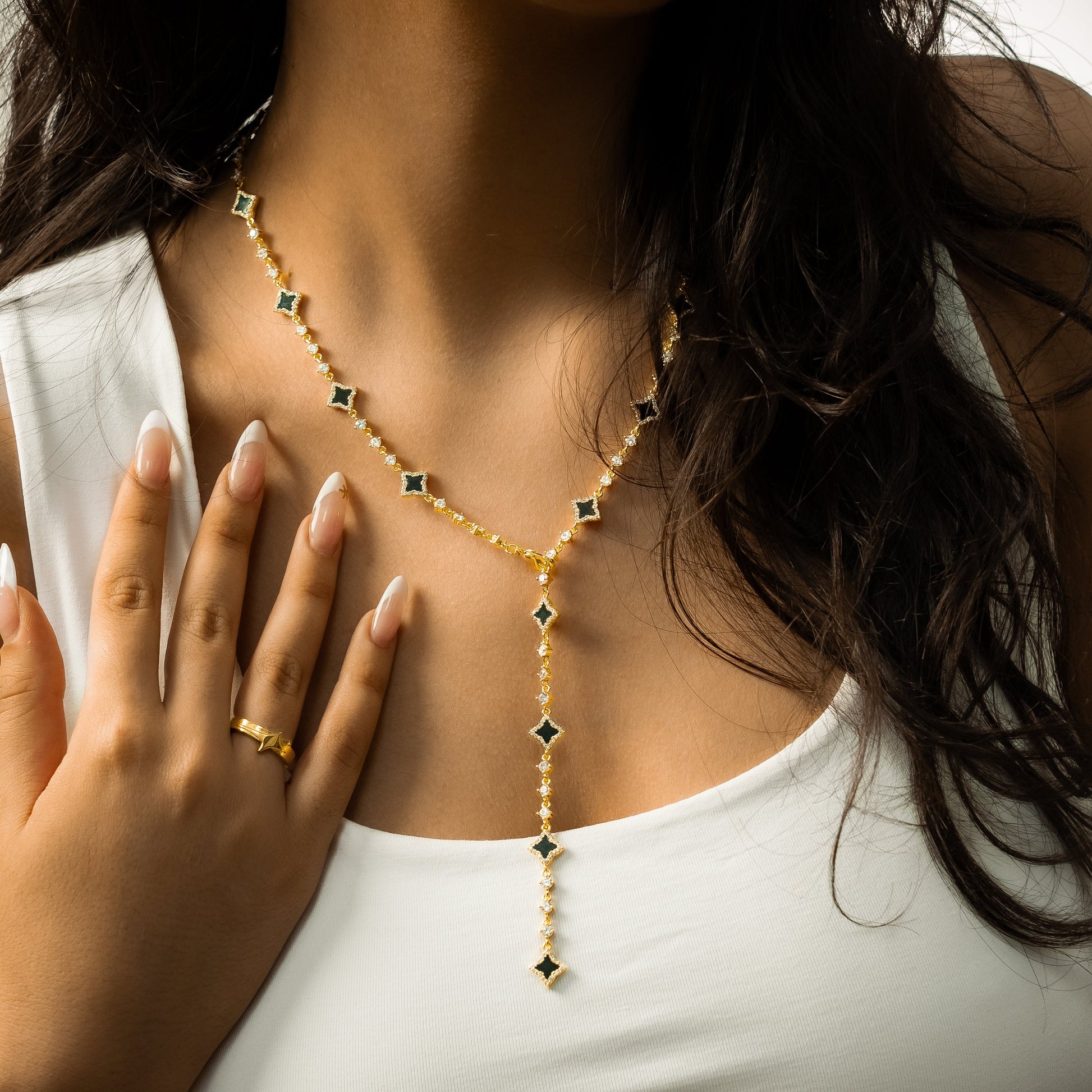 Discover our Flower Tennis Necklace, an exquisite piece that combines the timeless elegance of a tennis chain with the delicate beauty of flowers. Each flower, adorned with an imitation onyx stone and 8 mm thick, adds a touch of charm and sophistication to this 3 mm chain.