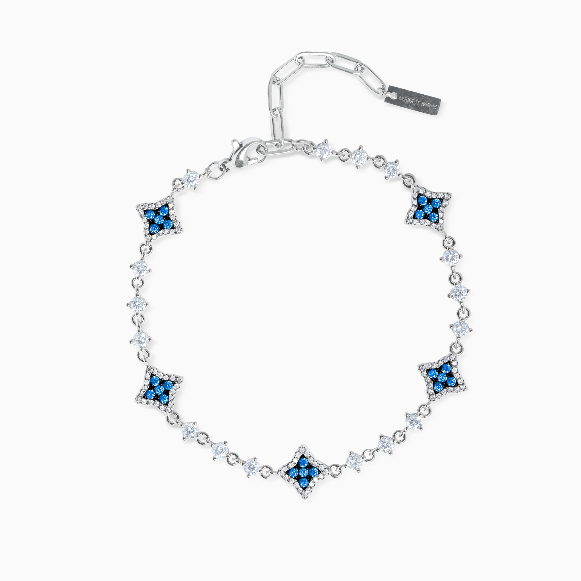 Bracelet Flower Tennis Argenté - Pierres bleues