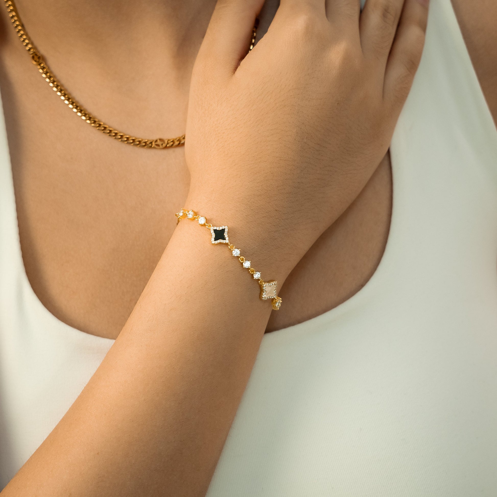 Bracelet Flower Tennis Doré - Motif Blanc & Noir