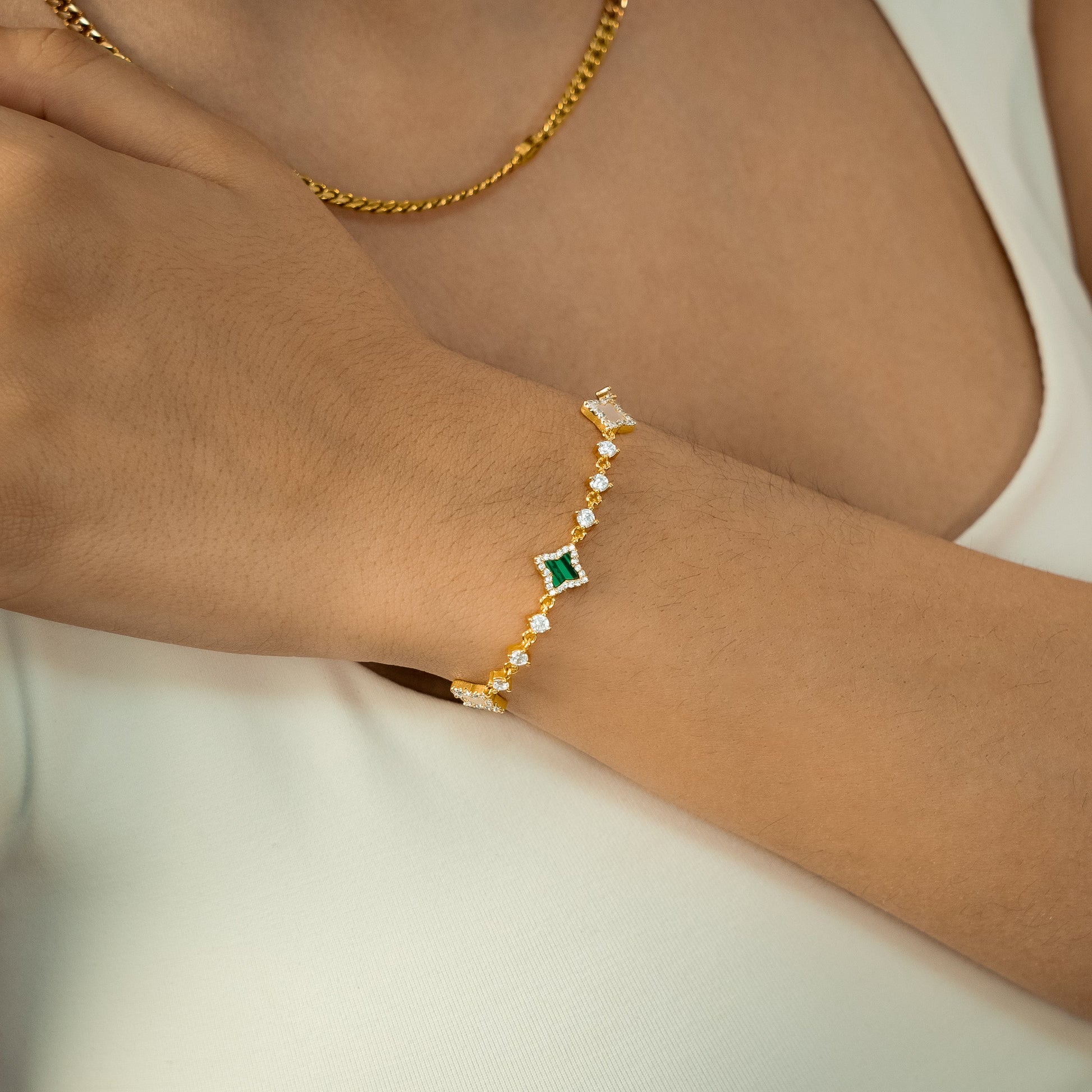 Bracelet Flower Tennis Doré - Motif Blanc & Vert