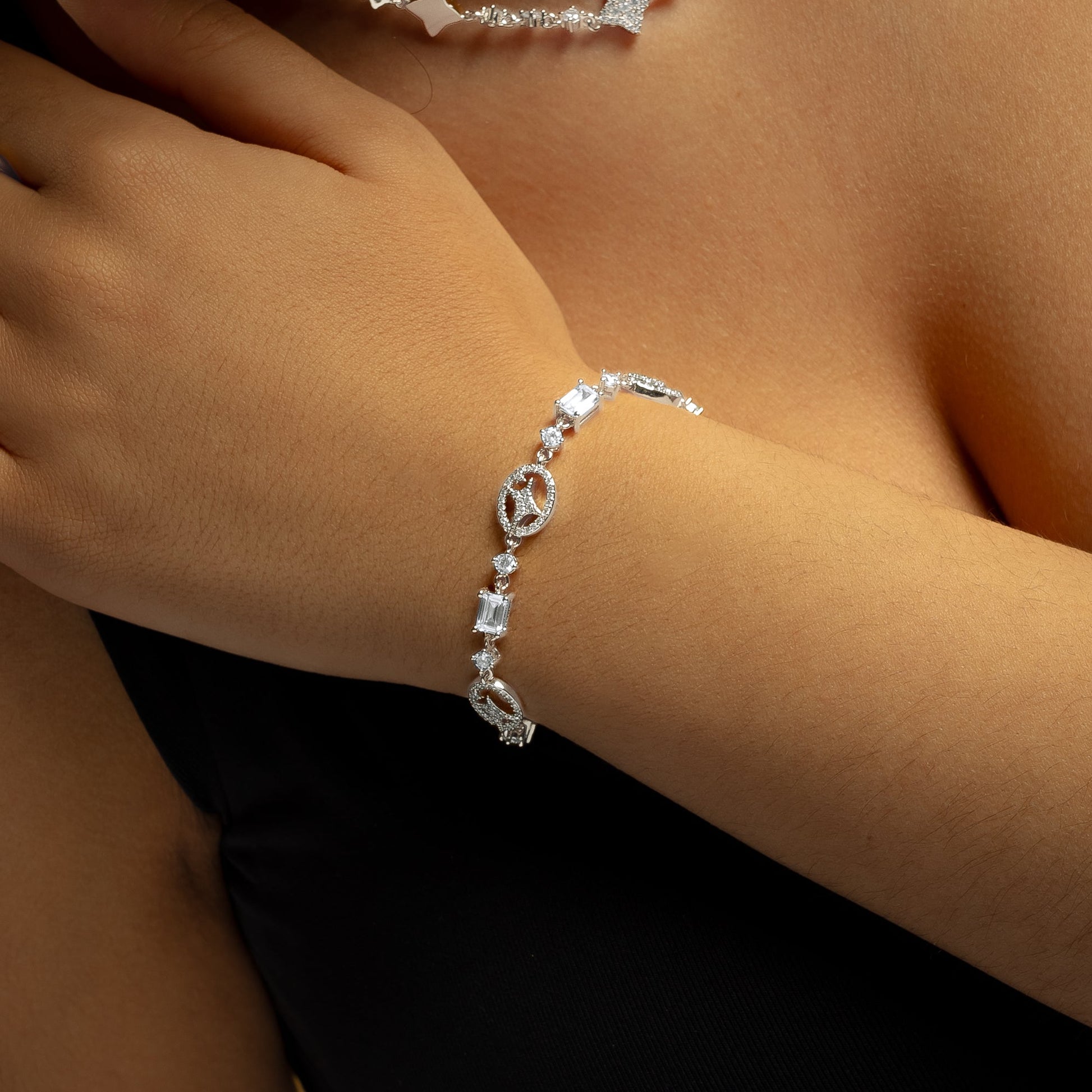 Découvrez notre Bracelet Iced Signature, une pièce sophistiquée ornée de notre célèbre logo encerclé, accompagné de pierres en forme baguette de 4 mm. Ce bijou apportera une touche de brillance à votre style.