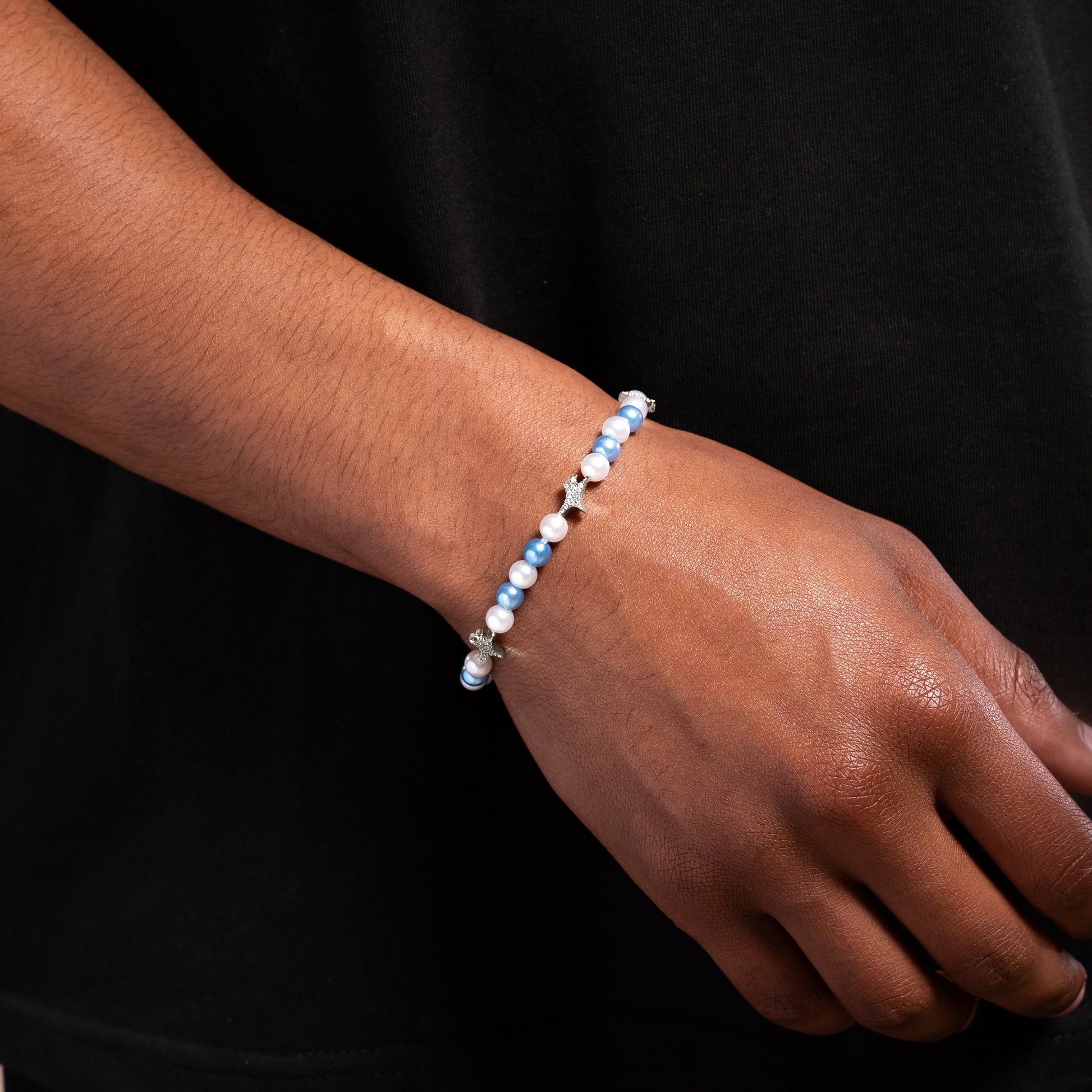 Bracelet perlé Signature Argenté - Blanc et Bleu