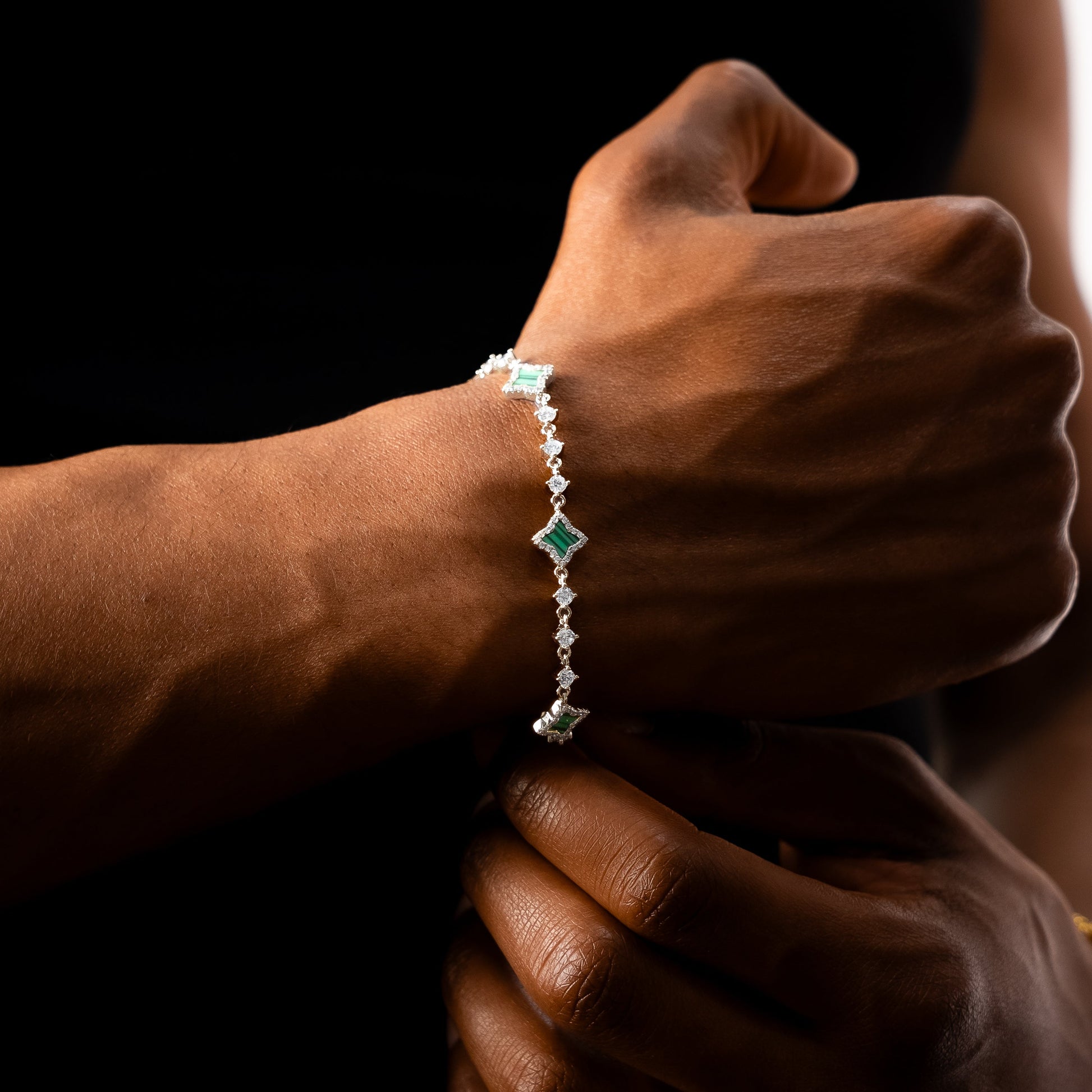 Bracelet Flower Tennis Argenté - Motif Vert