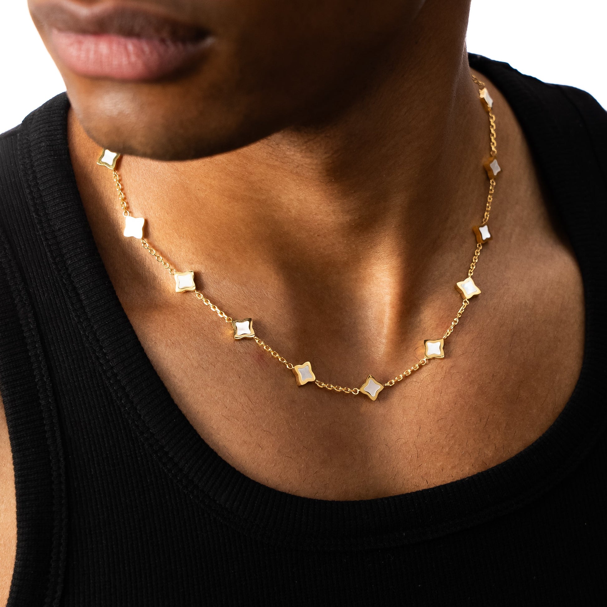 Chaîne Flower câble Dorée - Motif Blanc