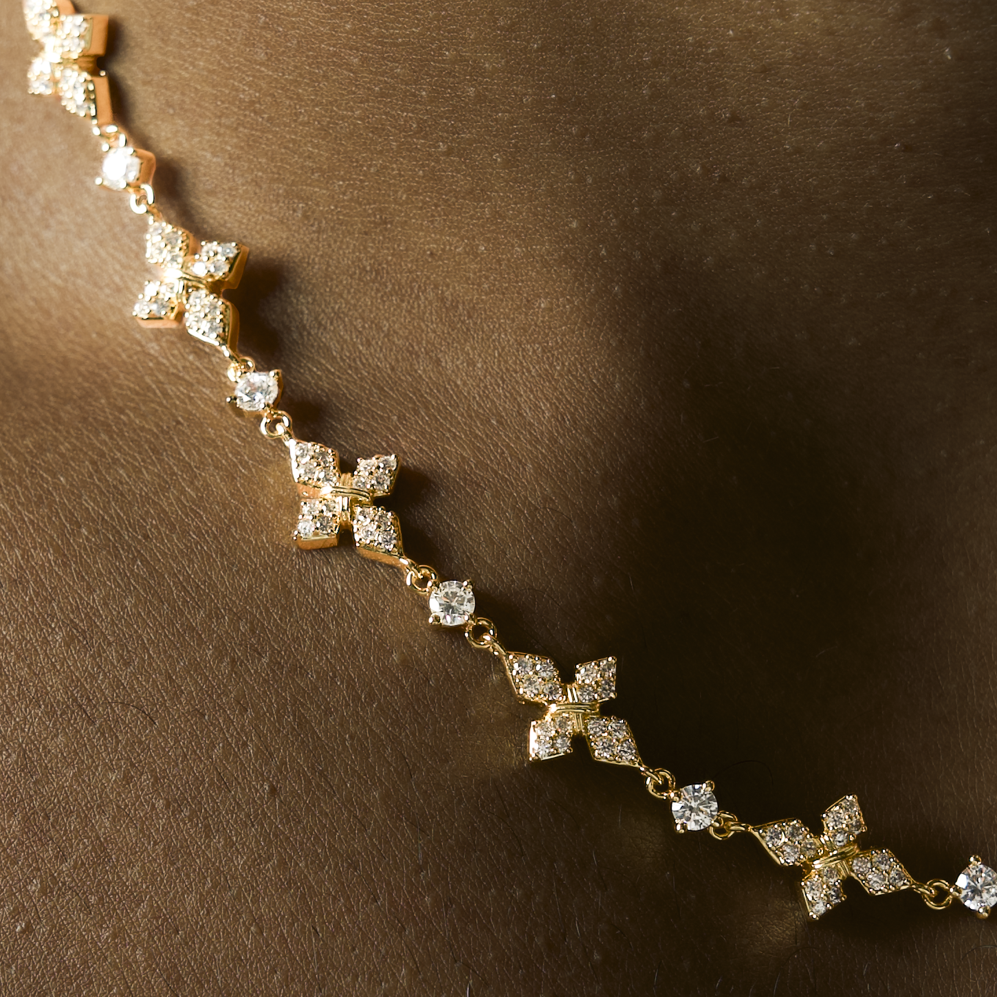 Composée d’une succession de croix étoilées sculptées et serties d'oxydes de zirconium, elle symbolise la résilience, la transcendance et la lumière née de l’épreuve.