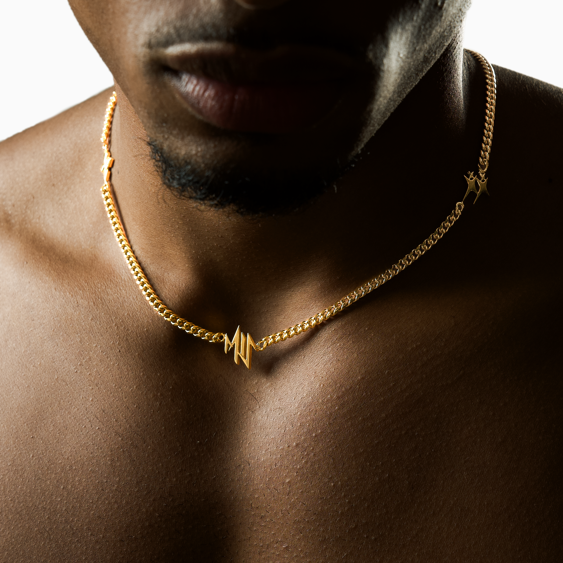 Reliés par une chaîne Cuban link de 4 mm, ils incarnent la force, la lumière et l’identité de la marque.