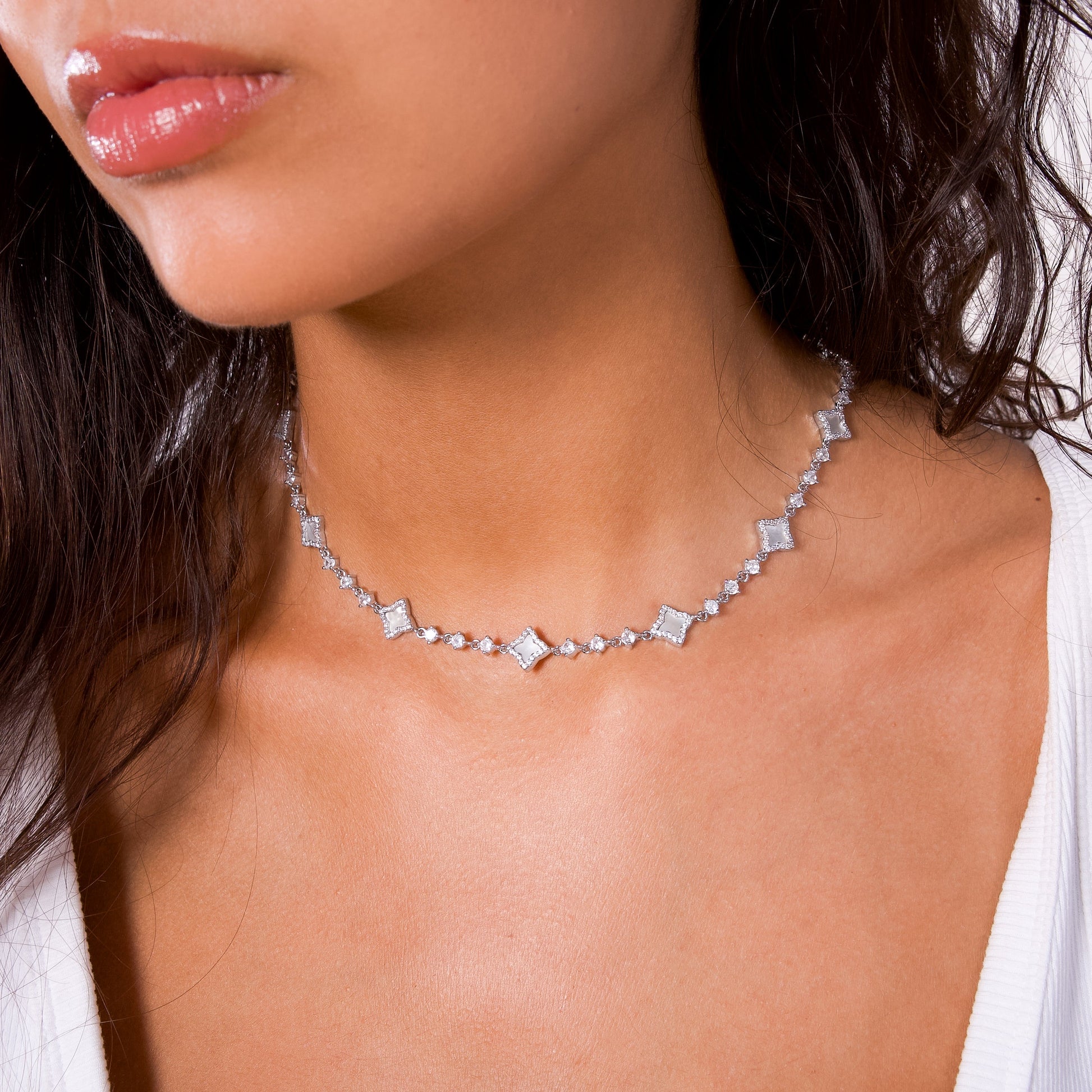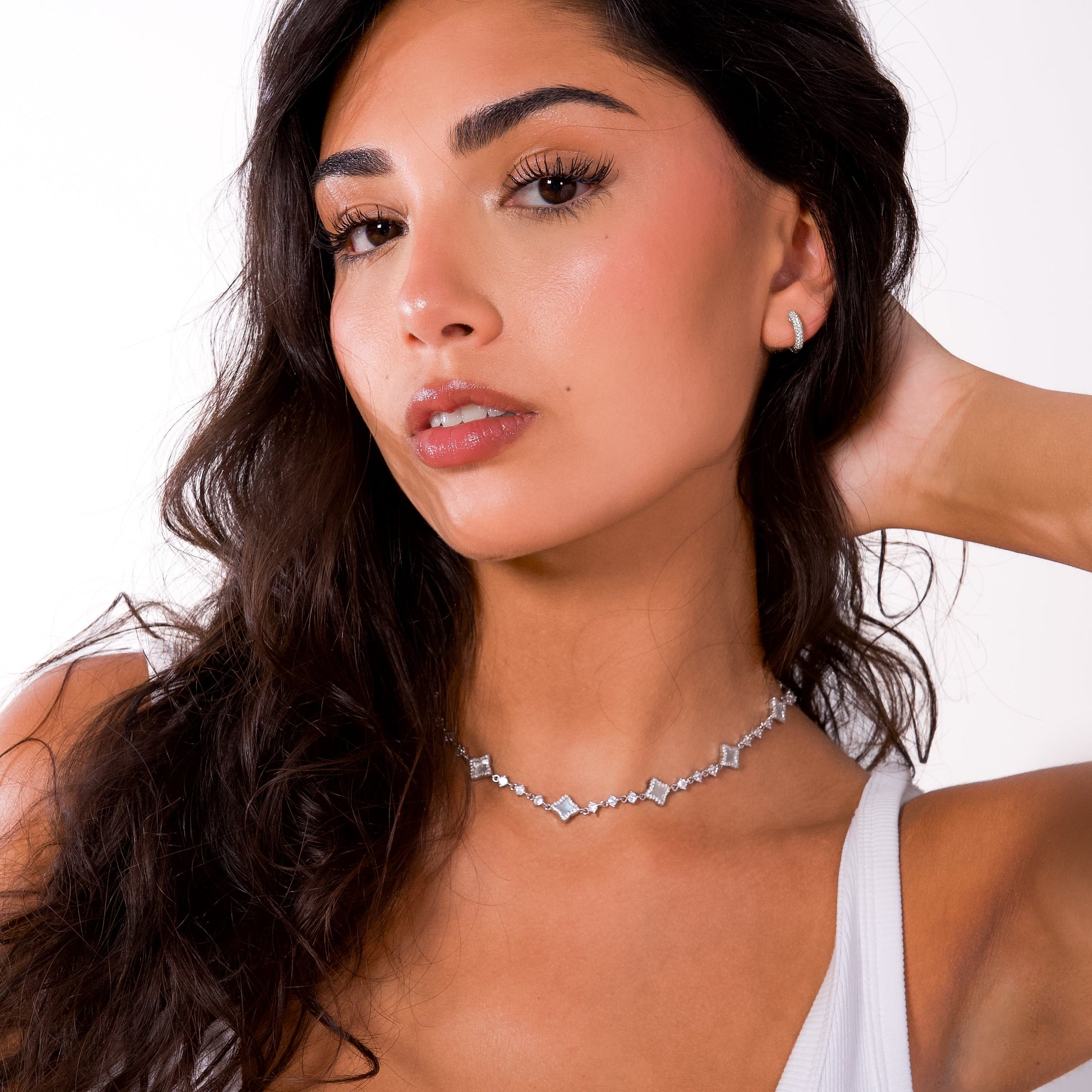 Chaîne Flower Tennis Argentée - Motif Blanc