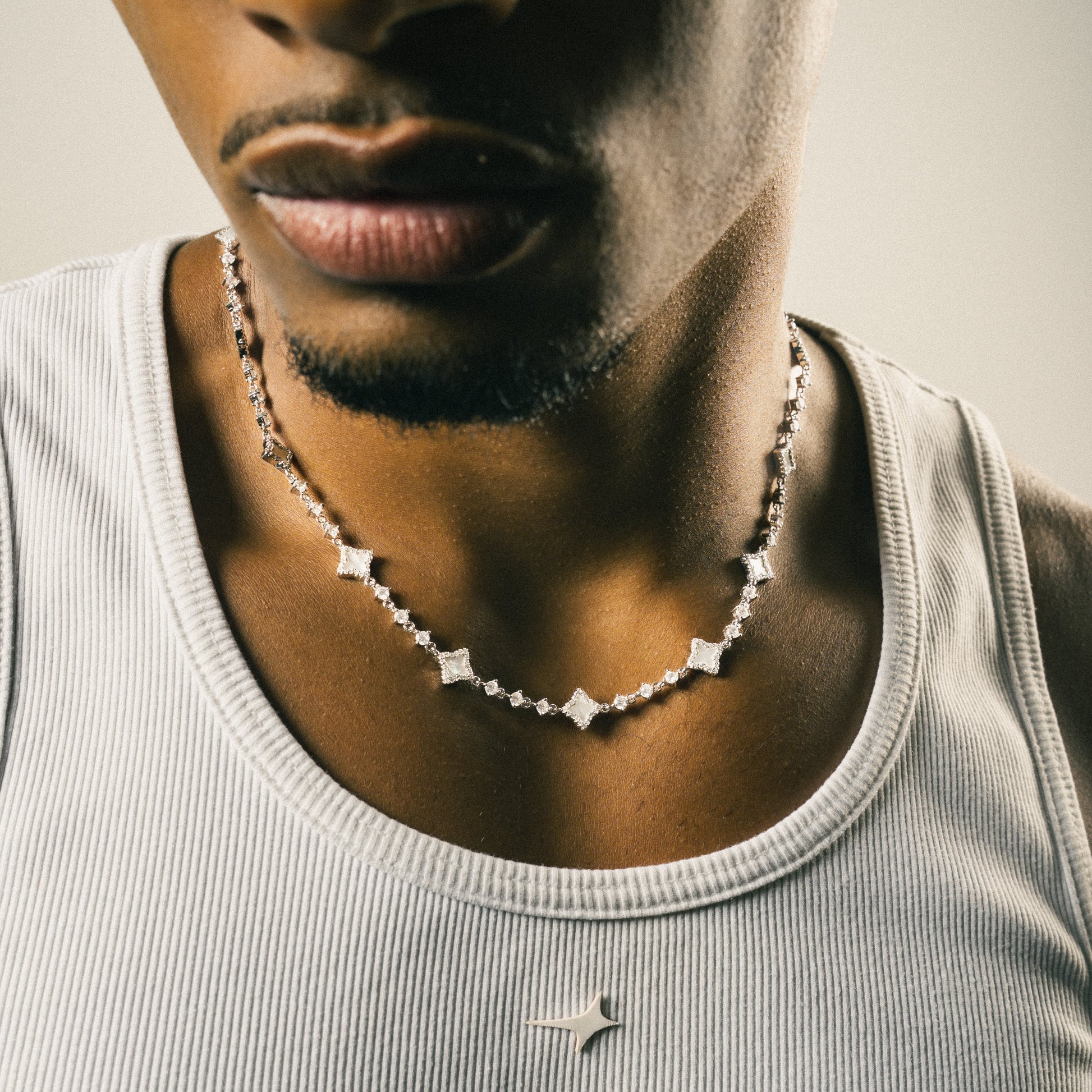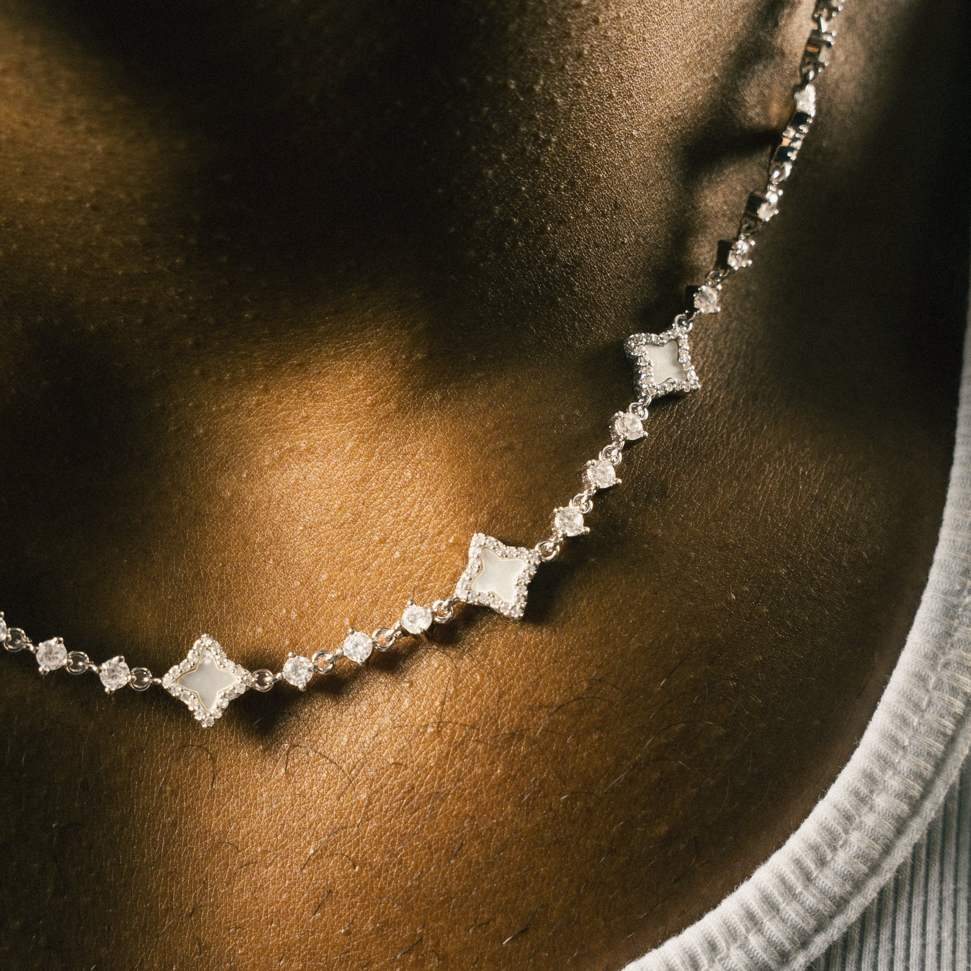 Chaîne Flower Tennis Argentée - Motif Blanc