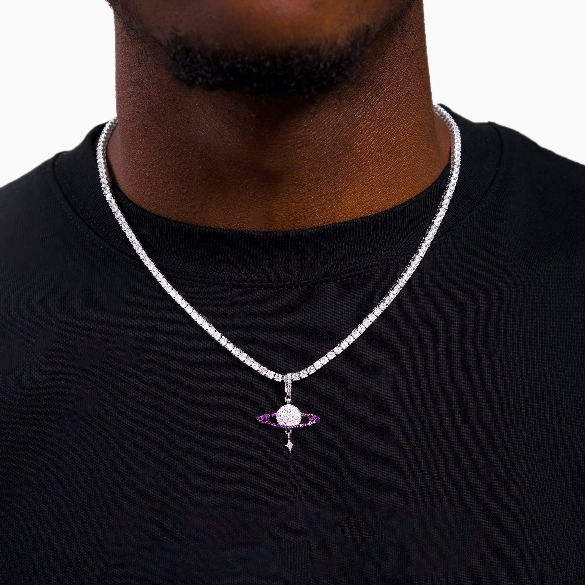 Découvrez notre pendentif Falling Planet, une pièce unique qui capture la beauté cosmique. Ce bijou représente une planète ornée d'oxydes de zirconium étincelants, encerclée d'un anneau délicat. Une étoile scintillante suspendue ajoute une touche de mouvement et d'élégance à l'ensemble.