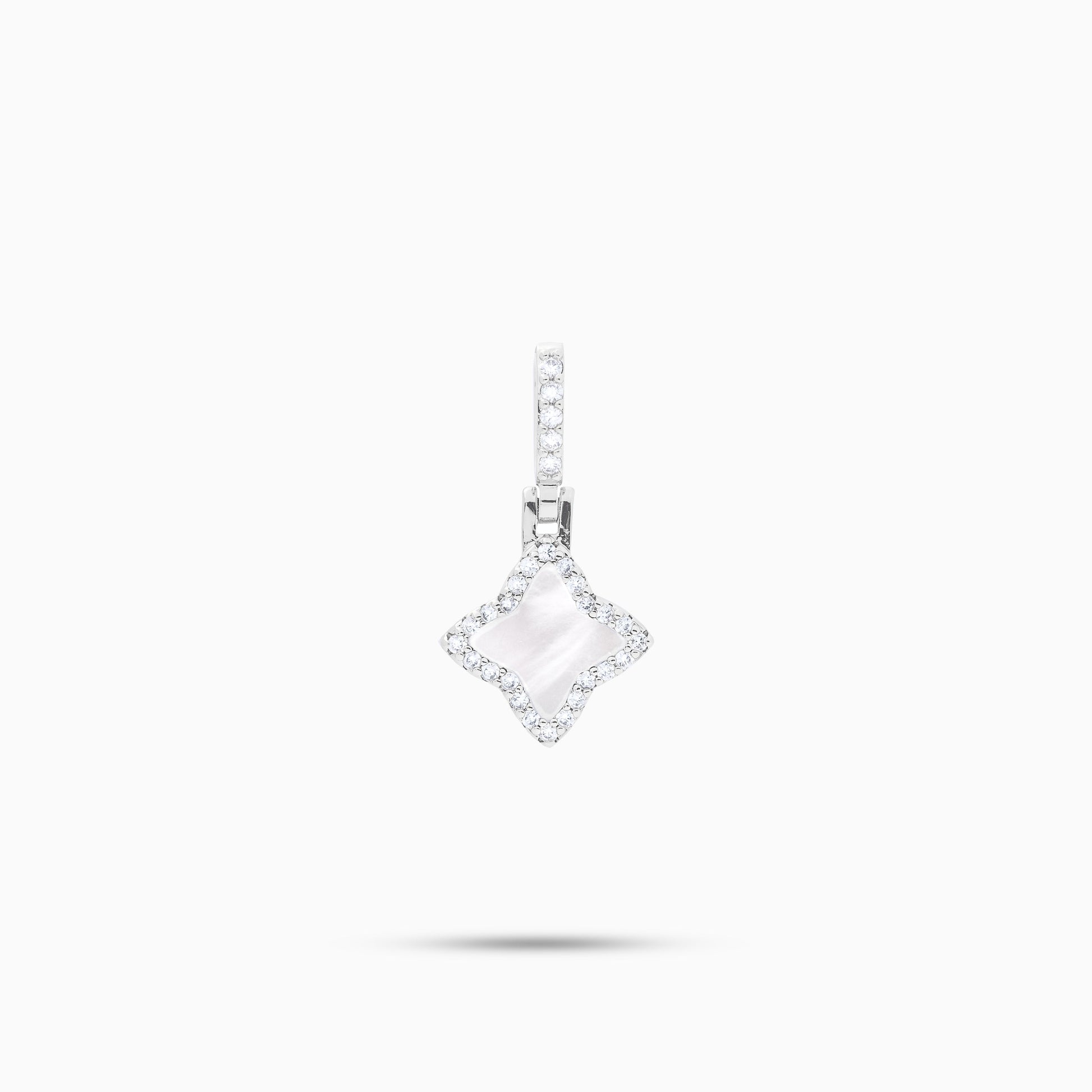 Voici notre pendentif Flower, alliant délicatesse et raffinement intemporel. Au cœur de ce bijou, une fleur sertie de pierres scintillantes met en valeur une pierre centrale en imitation nacre, le tout offrant une épaisseur de 8 mm pour un charme subtil et lumineux.