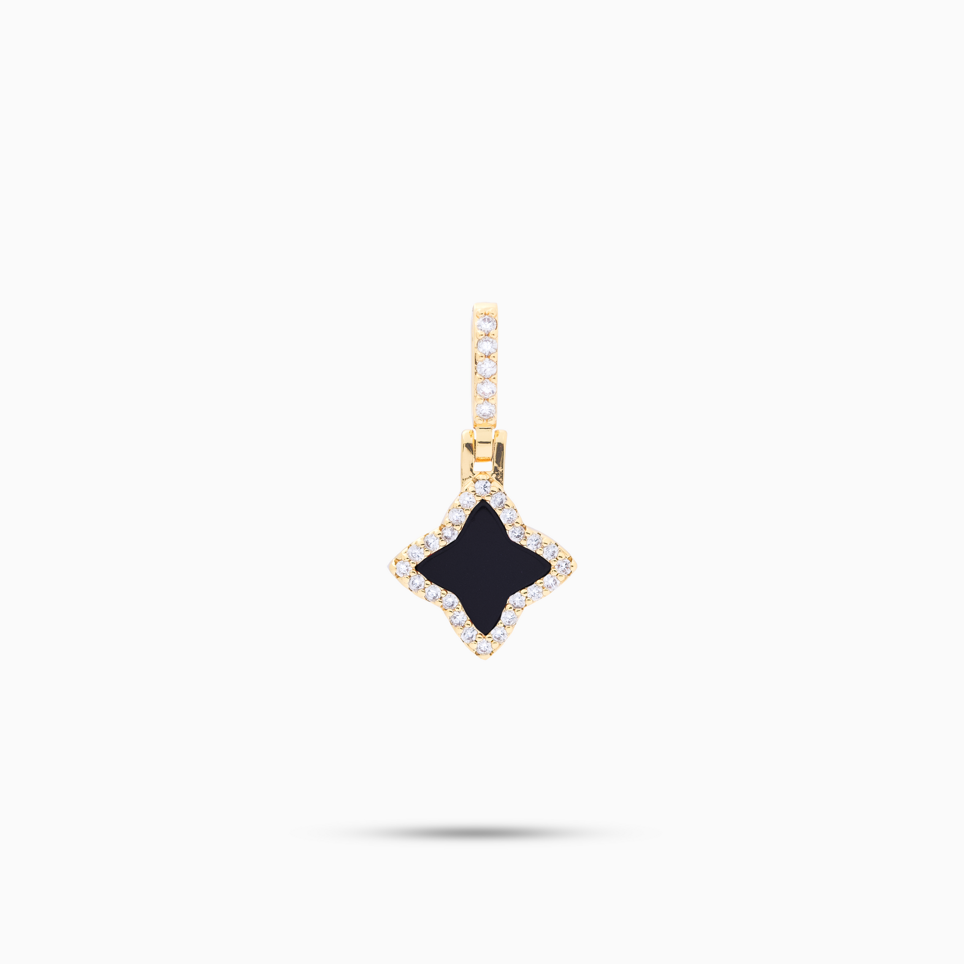 Voici notre pendentif Flower, alliant délicatesse et raffinement intemporel. Au cœur de ce bijou, une fleur sertie de pierres scintillantes met en valeur une pierre centrale en imitation onyx, le tout offrant une épaisseur de 8 mm pour un charme subtil et lumineux.