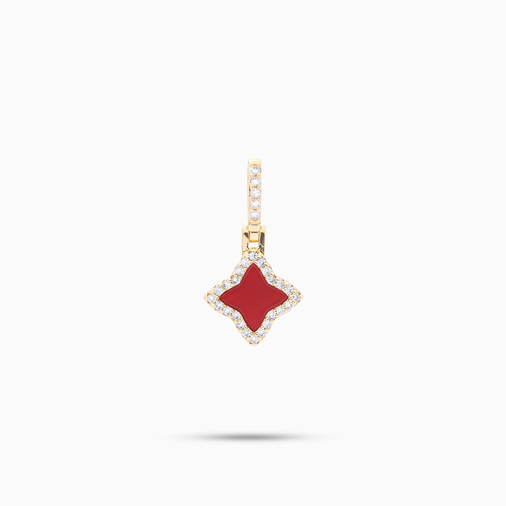 Voici notre pendentif Flower, alliant délicatesse et raffinement intemporel. Au cœur de ce bijou, une fleur sertie de pierres scintillantes met en valeur une pierre centrale en imitation cornaline, le tout offrant une épaisseur de 8 mm pour un charme subtil et lumineux.