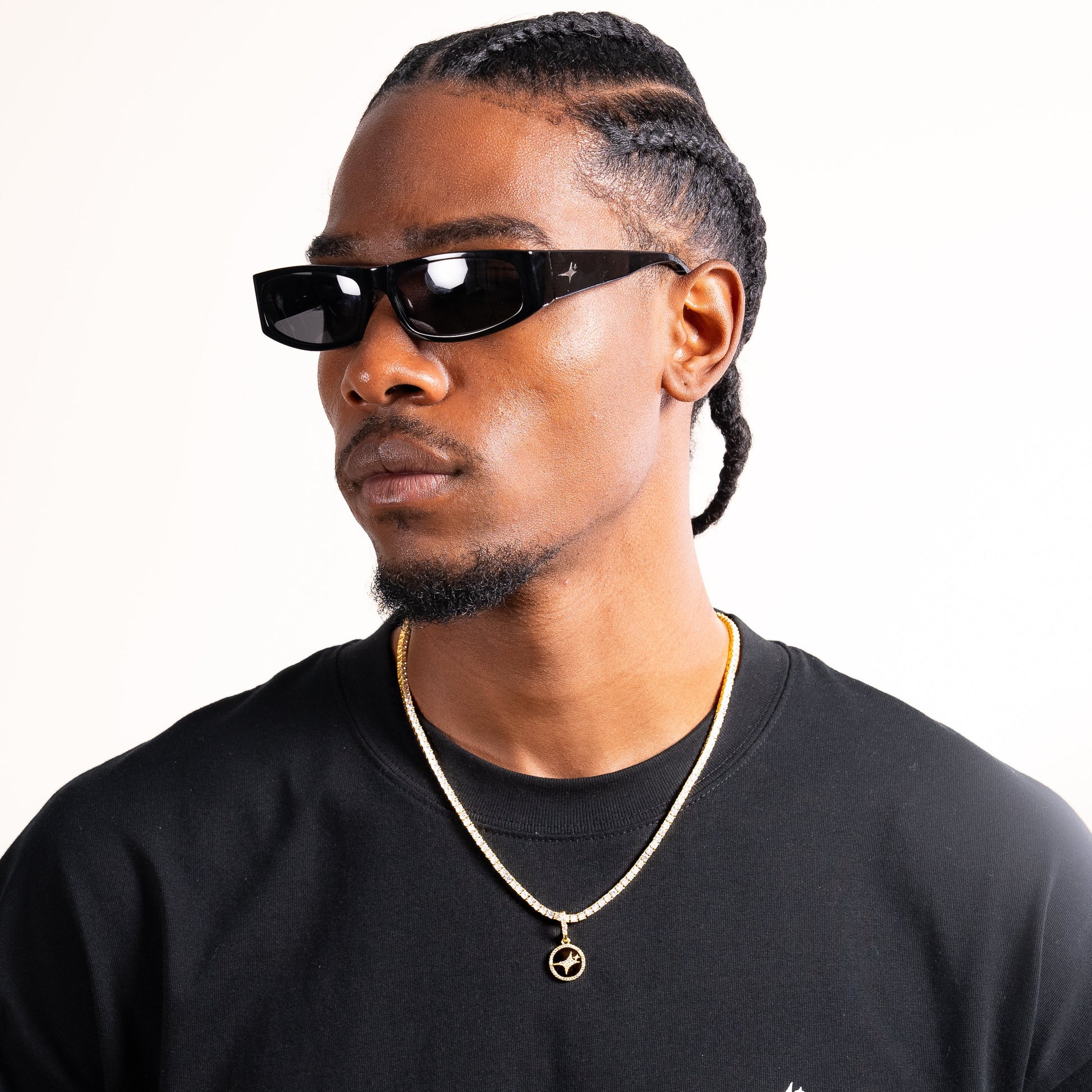 Découvrez notre médaillon Signature, un bijou éclatant qui sublime notre célèbre logo étoilé. D'un diamètre de 1,5 cm, ce pendentif raffiné est orné d'une pierre imitation onyx et d'oxydes de zirconium étincelants, mettant en lumière notre étoile au centre. Parfait pour ajouter une touche de sophistication et de brillance à vos tenues.