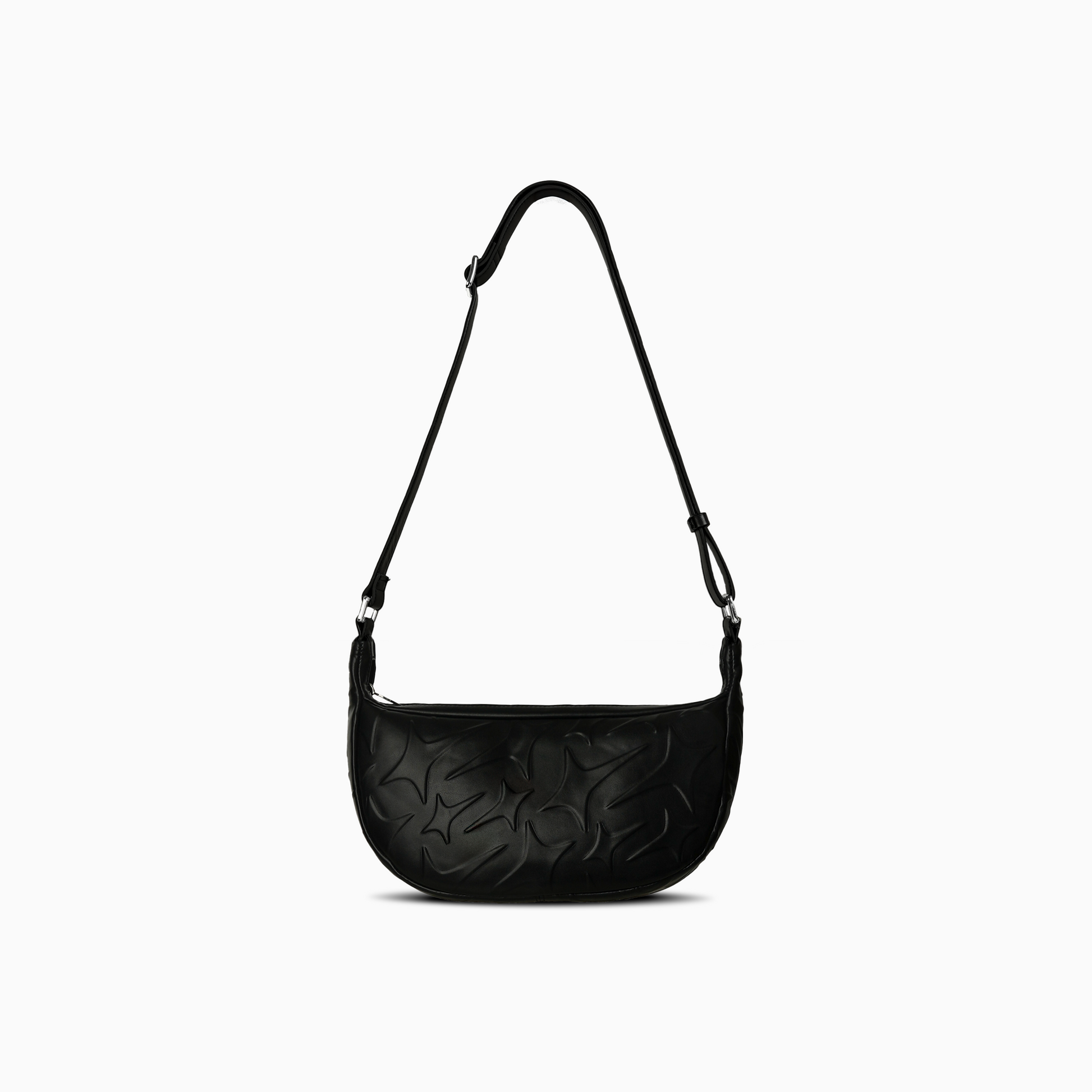 Le Messenger Bag Monogram, conçu en similicuir noir, revisite un essentiel urbain avec un design travaillé et affirmé. Plus spacieux (35 x 20 x 9 cm), il allie praticité et esthétique grâce à sa bandoulière réglable et son intérieur fonctionnel. Son style est sublimé par le monogramme Make It Shine embossé qui crée un relief unique, et par le logo métallique de 3 cm serti de pierres moissanite, pour une touche de caractère supplémentaire.