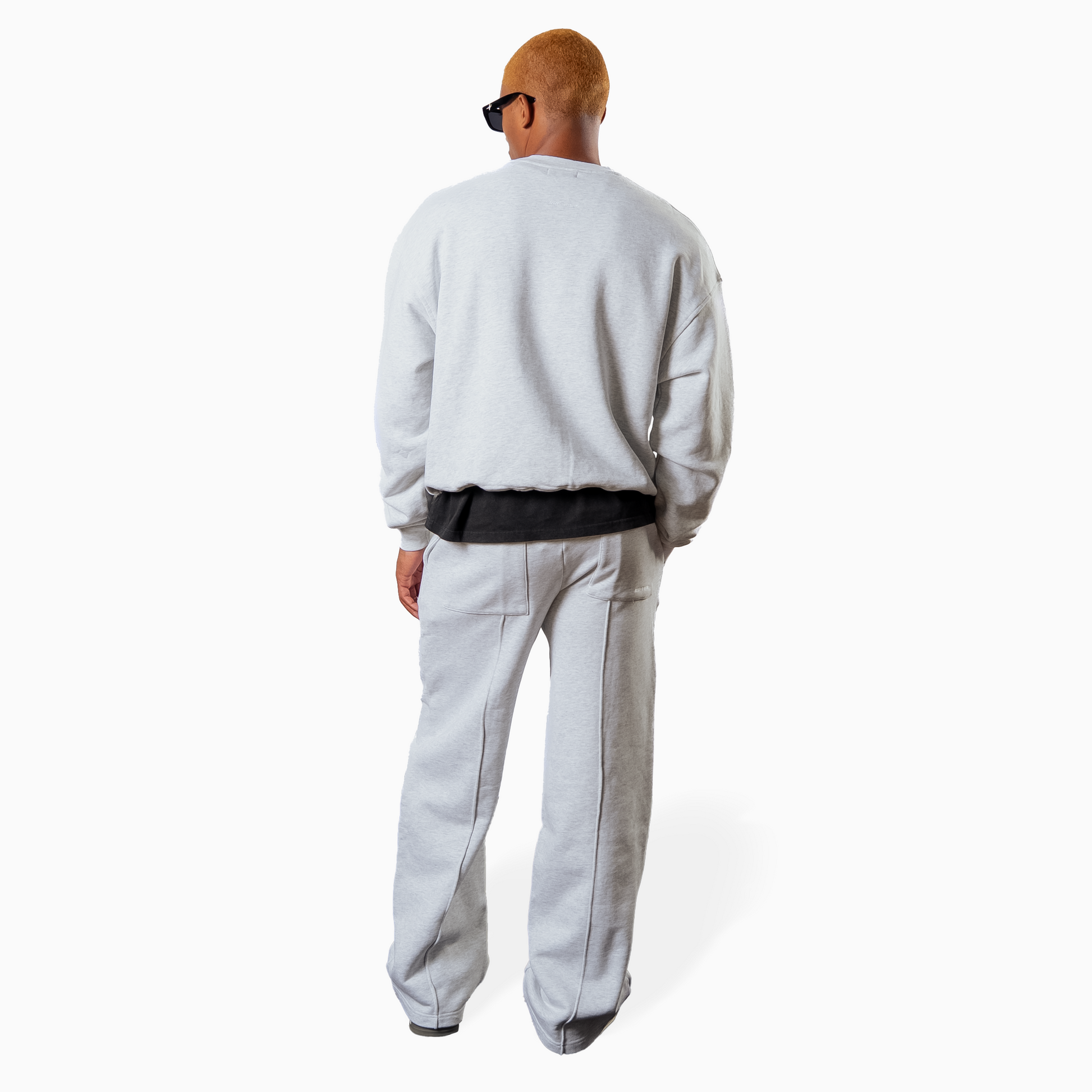 Sweatpant gris en jersey épais avec une coupe ample et confortable, confectionné en 100% coton de qualité supérieure. Doté de poches latérales pratiques et d’une taille élastique avec cordons de serrage internes pour un ajustement optimal.