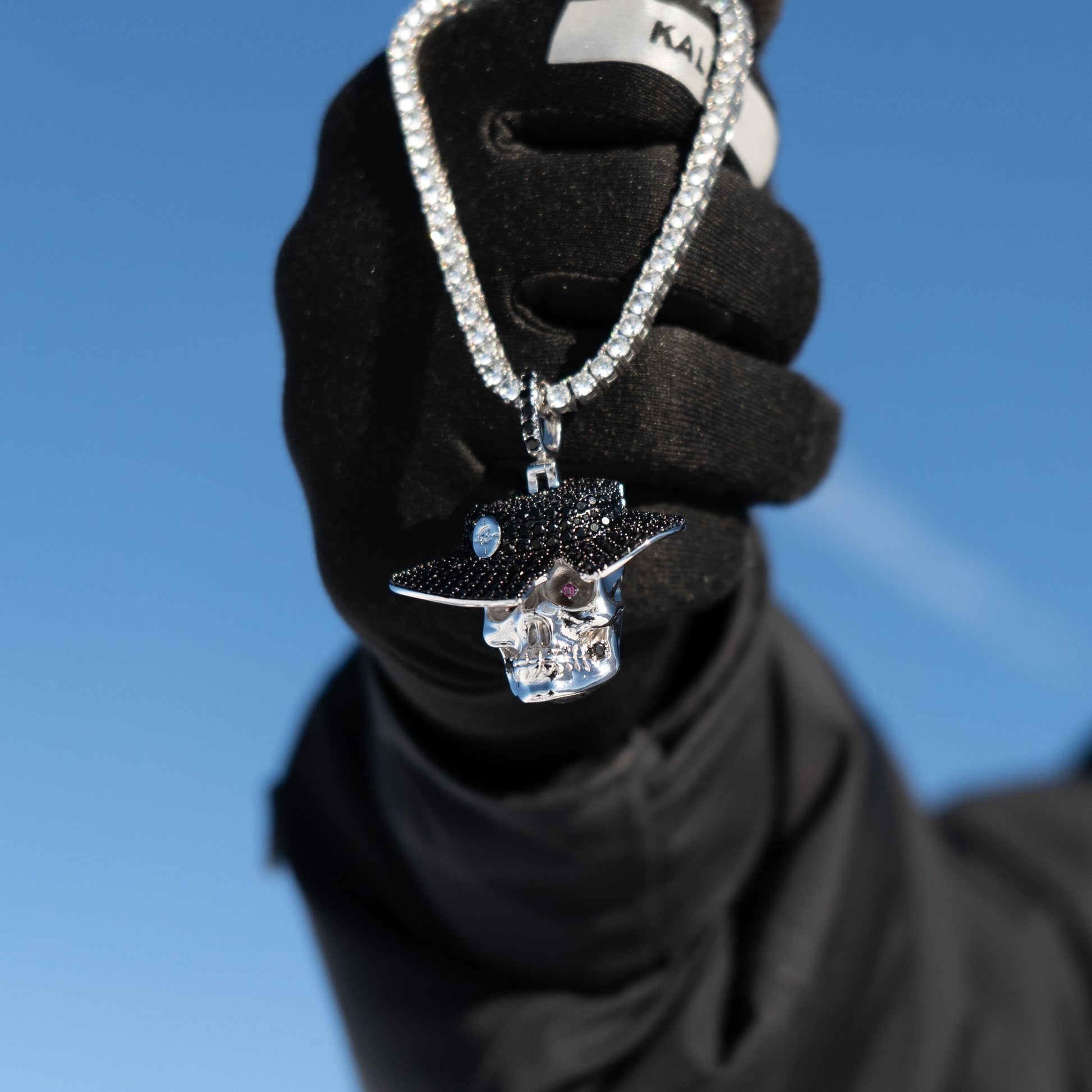 Découvrez notre pendentif exclusif "The Last Pirate", une création conçue en collaboration avec le combattant UFC Morgan Charrière. Cette tête de mort unique, avec des yeux en pierres roses et un chapeau de pirate orné de pierres noires, incarne l'esprit intrépide du célèbre pirate.